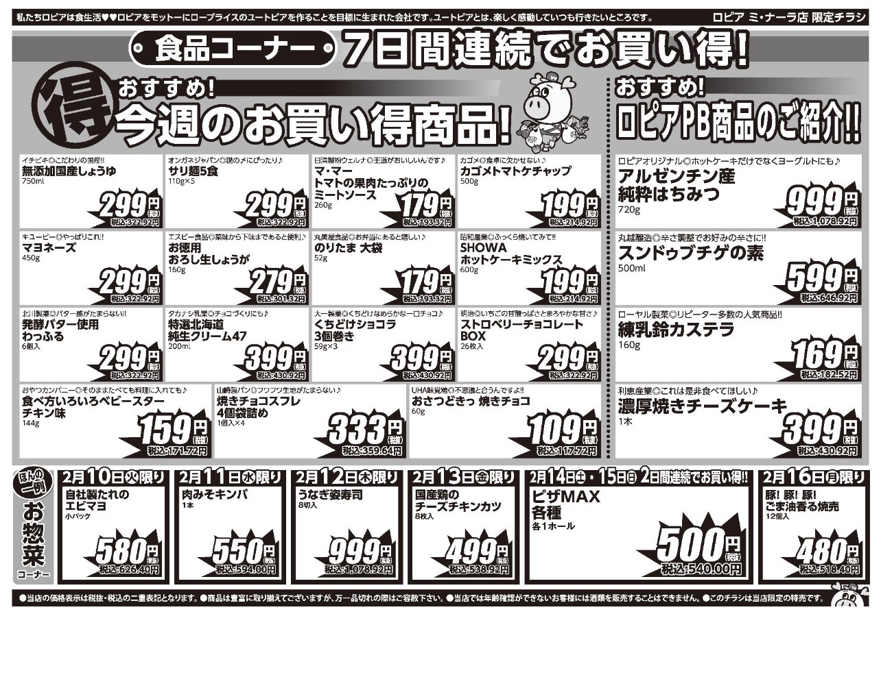 ロピア寝屋川島忠ホームズ店チラシ2月10日-2月16日お買い得情報