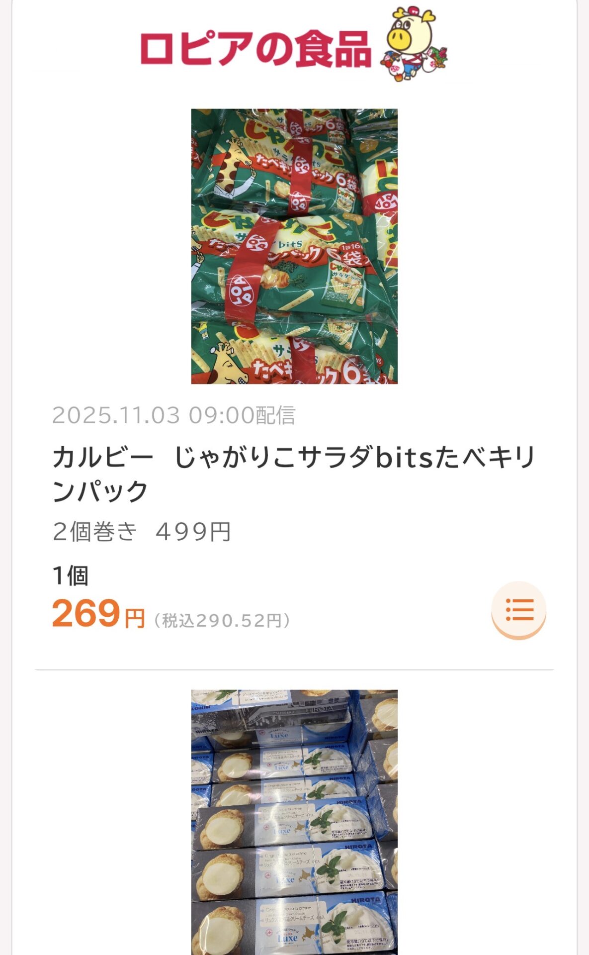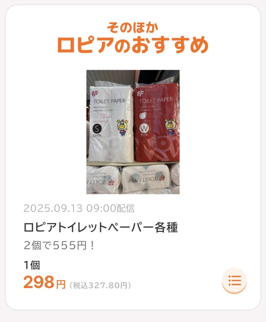 ロピア利用ロピア単体で2000円(税込)ご利用の場合