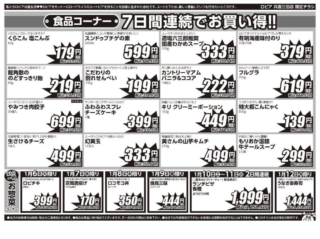 ロピア尼崎チラシ最新1月6日-1月12日島忠ホームズ尼崎店お買い得情報