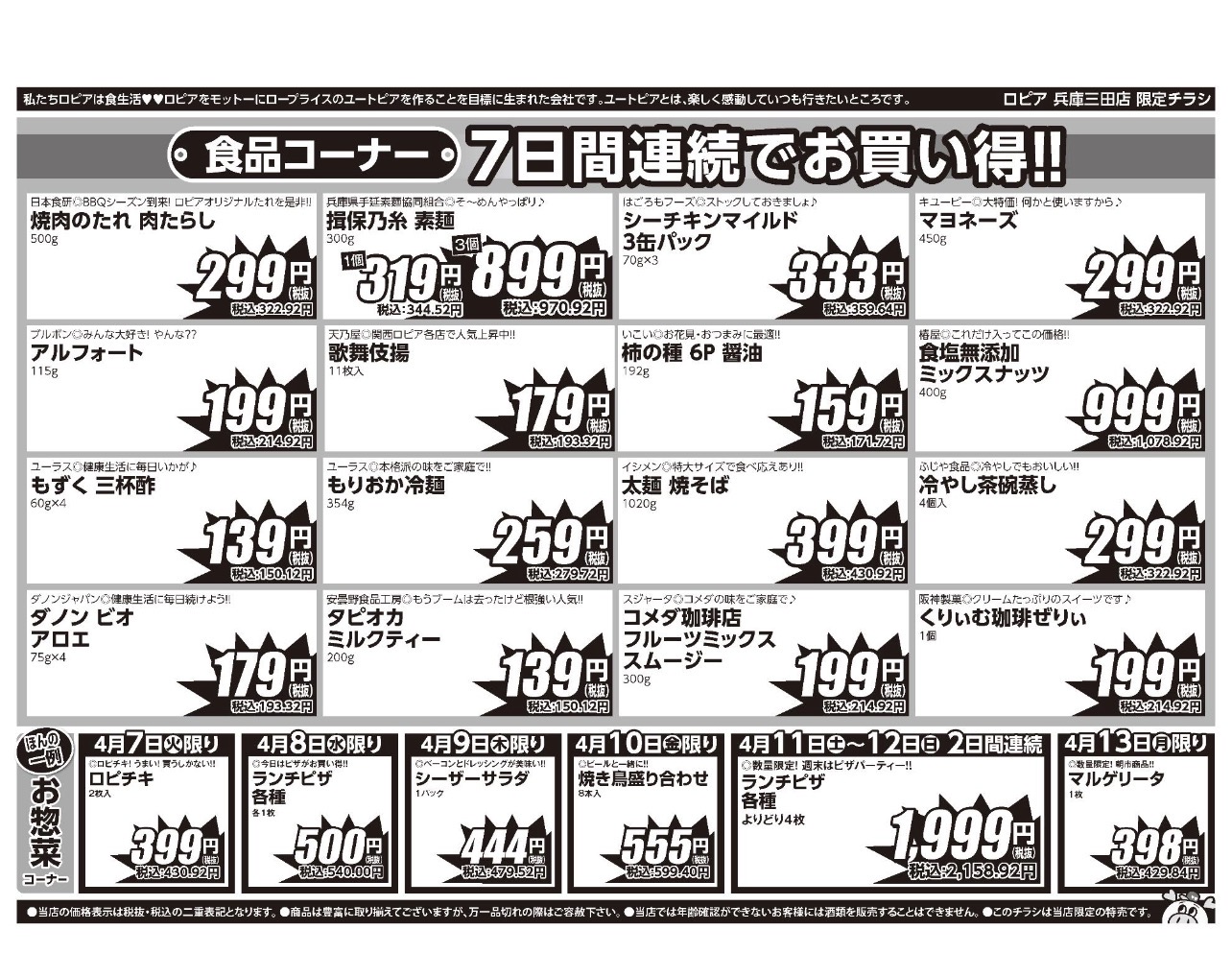 ロピア奈良ミナーラ店チラシ4月7日-4月13日お買い得情報